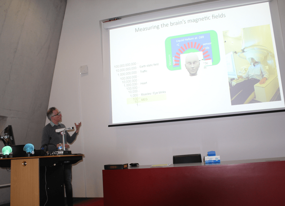 The second speaker was Professor Gareth Barnes who works on the development of human brain imaging systems. His expertise is in magnetoencephalography (MEG), or the measurement of magnetic fields from the human brain. He graduated as an electronic engineer at the University of York and completed his PhD at Aston University. Since 2009, he has been head of the MEG laboratories at University College London. In the event, he presented the current news in the field of magnetoencephalography.