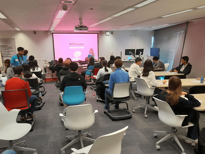- MCQ exam with 55 neuroscience questions which students had to answer in 45 minutes;