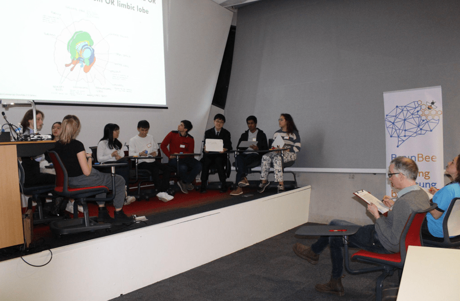 After the exams were marked by judges, based on their total combined scores the Top 10 students were selected. They qualified for the Live question-and-answer round which took place in front of a large audience with three prominent neuroscientist judges.